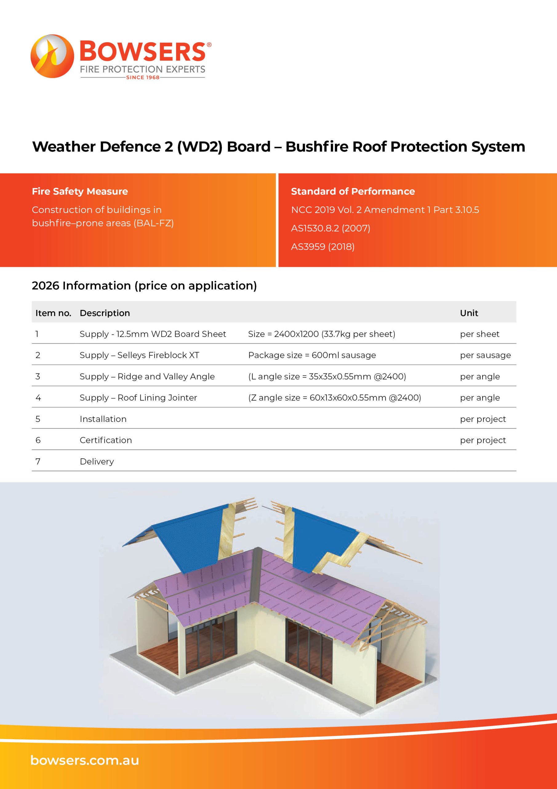 As the distributor of Bushfire Roof and Wall Systems and Weather Defence 2 (WD2) Board, Bowsers offers unique and highly effective protection options