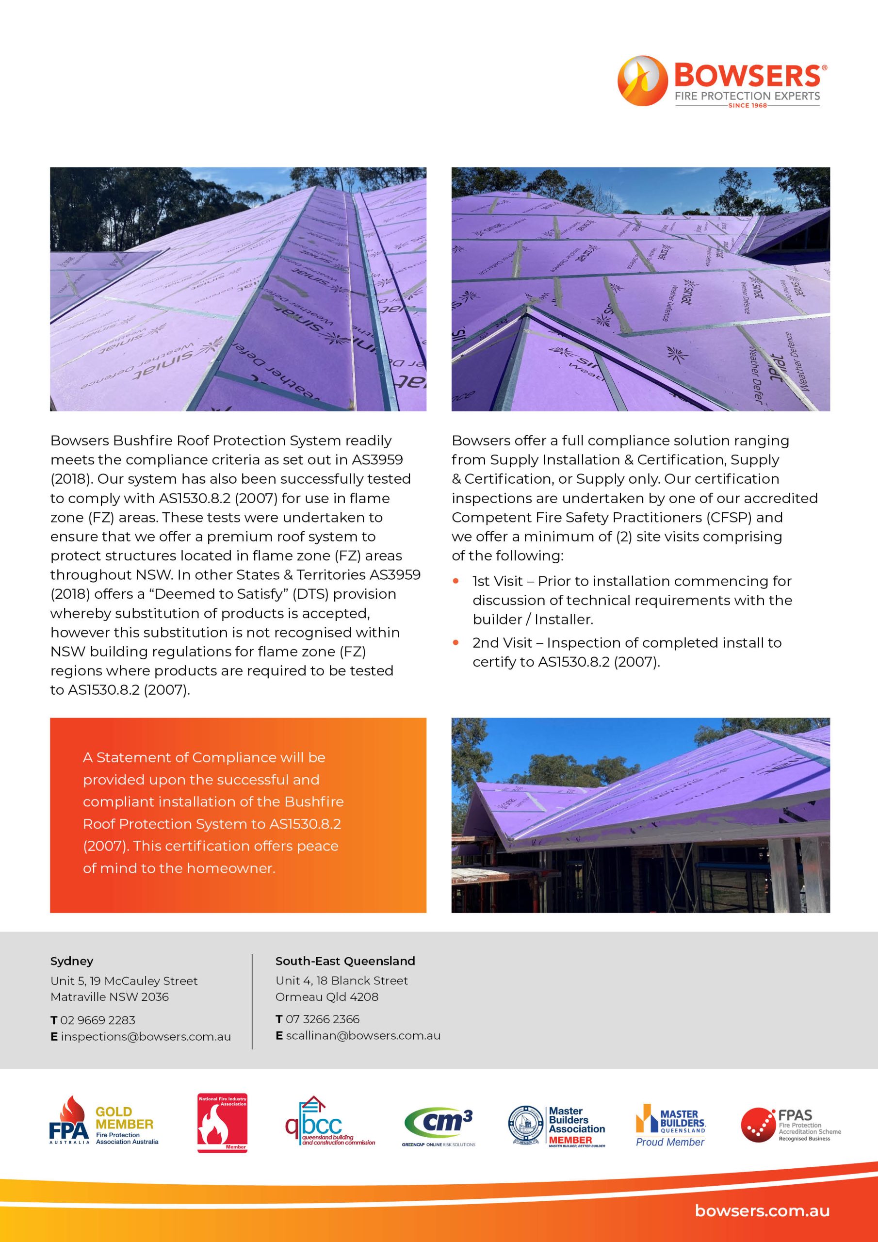 Our solutions are fully compliant with the requirements of the Rural Fire Service and Australian Standard.