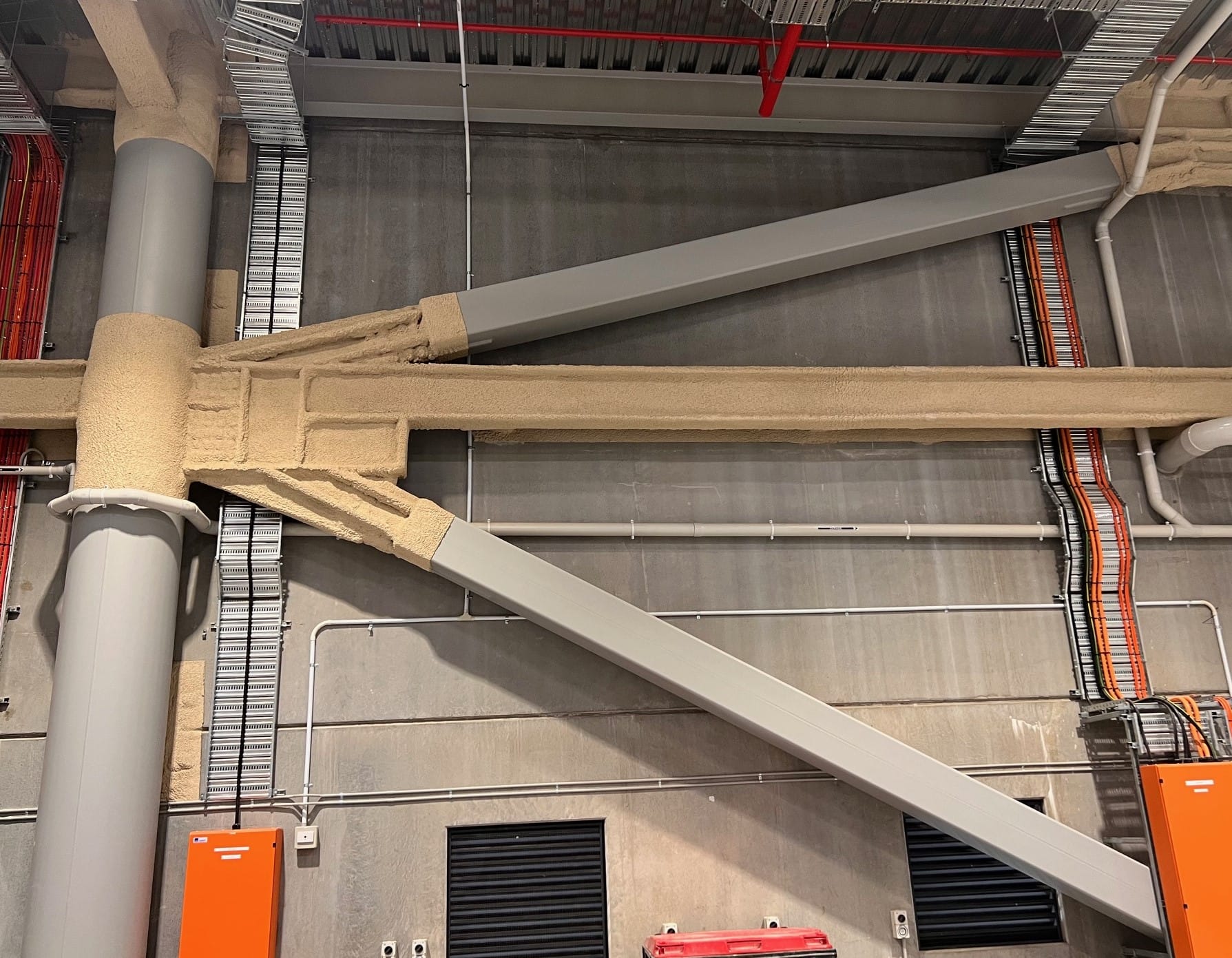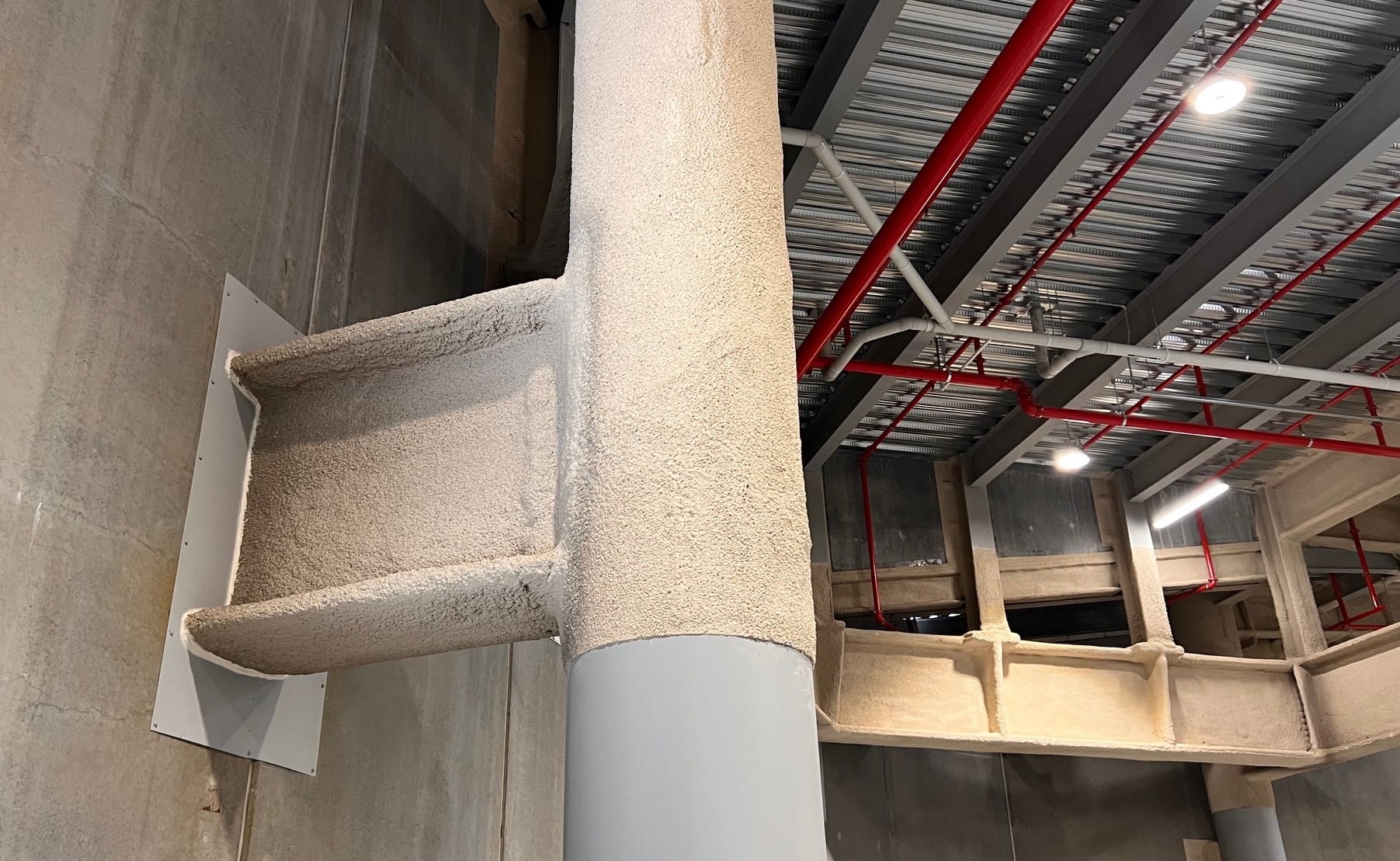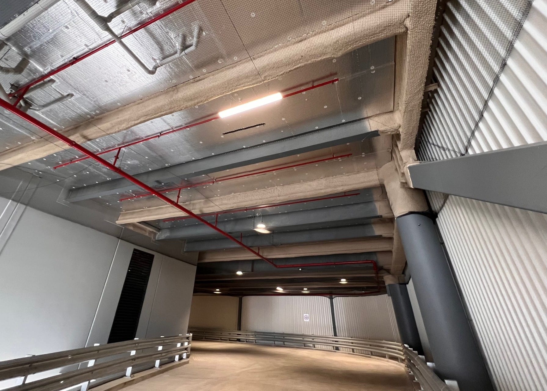A key challenge was the application of fire spray to the structural steel supporting the vehicle access ramps. This required strategic use of access equipment and careful scheduling to minimise disruption to site operations. Additionally, with structural columns reaching heights of up to 8 metres, specialised height-access solutions were essential to ensure precise and effective application.